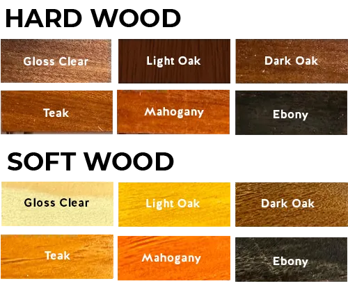 All surfaces made from soft or hardwood such as Pine, Meranti, Mahogany, Saligna, Blackwood, Stinkwood, Kiaat, etc.